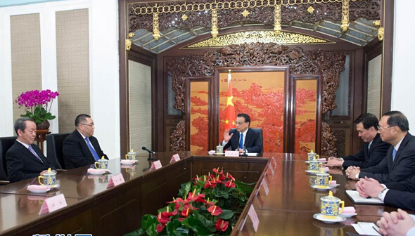 12月23日,国务院总理李克强在北京中南海紫光阁会见来京述职的澳门特别行政区行政长官崔世安。