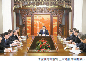 特首梁振英前赴北京進行年度述職,分別獲國家主席習近平和國務院總理李克強在中南海涵元殿和紫光閣接見,在禮遇層級方面經已非常隆崇。當然,整項述職活動,最矚目的還是述職會議枱的安排,由過往的並排禮節式安排,改為長枱式會議,凸顯實體述職的實務職能,釐清「一國」下「兩制」的憲政地位。