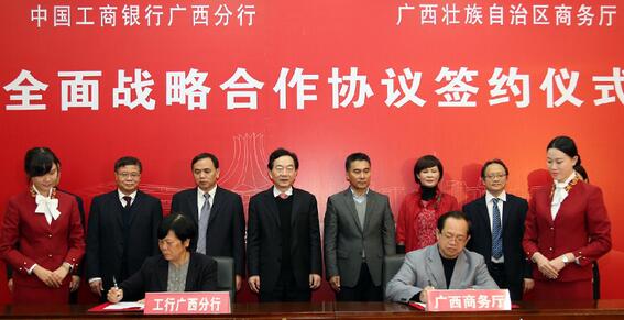 人民網南寧12月14日電(張紅璐、蘇會瑤)12月23日,廣西壯族自治區商務廳與中國工商銀行廣西分行在南寧簽署全面戰略合作協議。