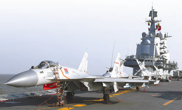 值得注意的是,美國《國防》月刊2016年1月號最新發表文章稱,中國海軍在其唯一的航空母艦上進行了一系列攔阻著艦測試后,殲15「飛鯊」戰斗機飛行聯隊可能於2016年初正式啟用。遼寧艦的滿載排水量為6萬噸,可容納30到36架固定翼和旋轉翼飛機。