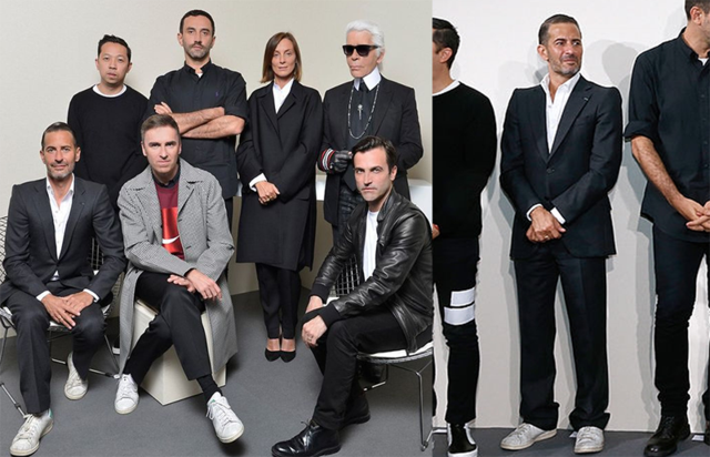 2015 LVMH Prize青年设计师大奖赛(左图:第一排左一 Marc Jacobs、左二Raf Simons