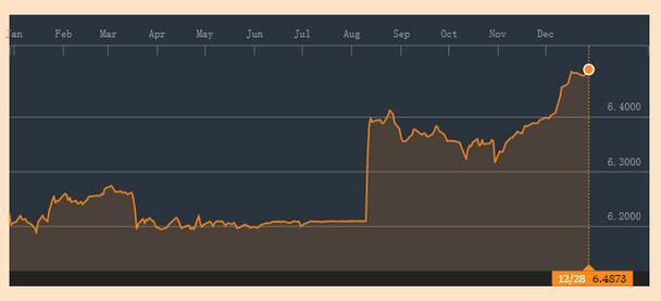 北京时间12月28日下午2点后,在岸人民币一改当天平稳的步伐急速走低,交易结束时兑美元下跌0.18%,报6.4880,创下了2011年5月以来的最低收盘价。在中国经济几乎仍没有稳固复苏迹象的大背景下,上证综指创下一个月来最大跌幅重新激发了投资者对资本外流的担忧。