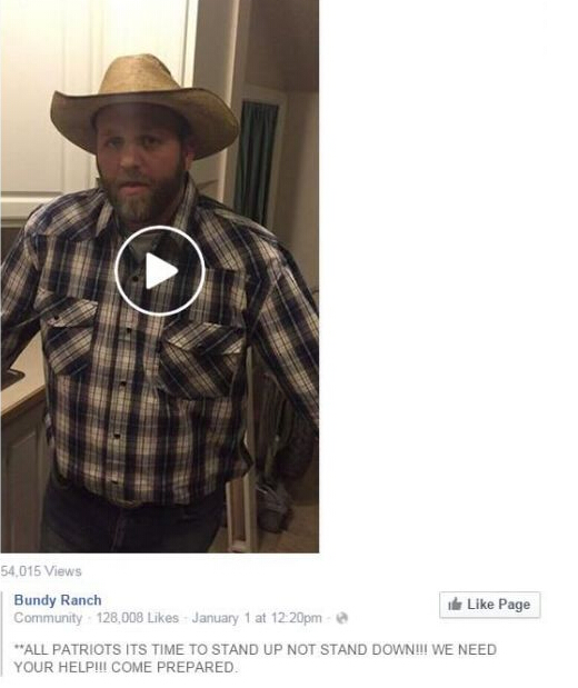 安蒙·邦迪在脸书(facebook)上号召“起来,爱国者们!我们需要你的帮助!”