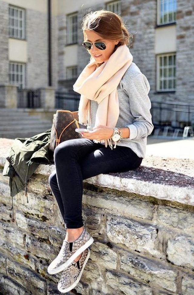 冬天一条纯色的围巾超级小清新,相比深色的围巾,一条浅色的纯色围巾搭配上圆领浅色打底衫,再配上一条leggings的姑娘走在冬日阳光里都显得透亮了起来。