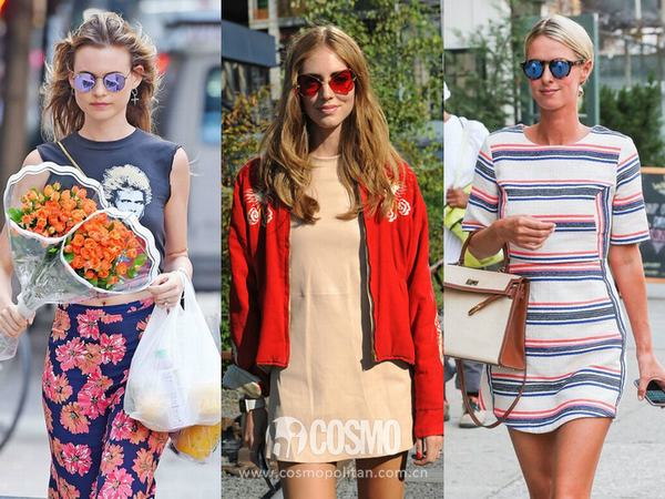 颜色抢眼的墨镜也将成为你今年必须要收的一件单品,尤其是这种彩色反光的,不管是抢眼的蓝色还是这种粉色或者是其他颜色比较鲜艳的,比起普通的黑色都能让你更加有型。