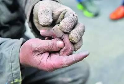 用粗糙肿胀、布满老茧的手,握着粉笔和碳棒不停地涂抹着。