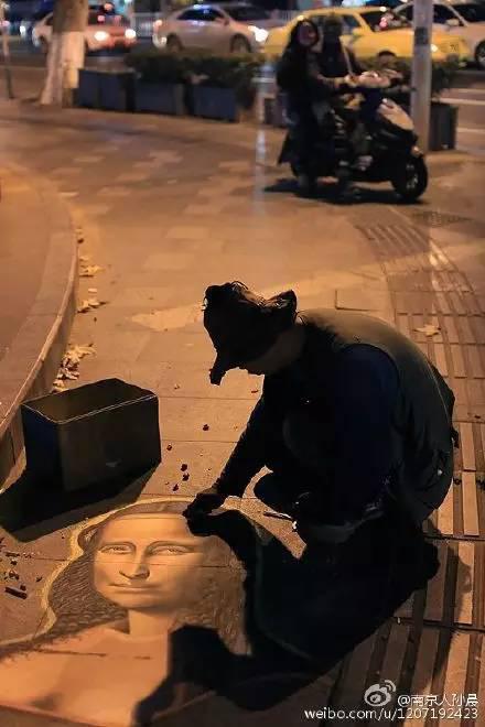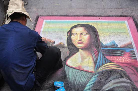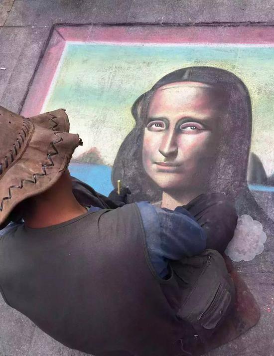 他用粉笔画出的《蒙娜丽莎》,看上去和油画一样细腻、传神。