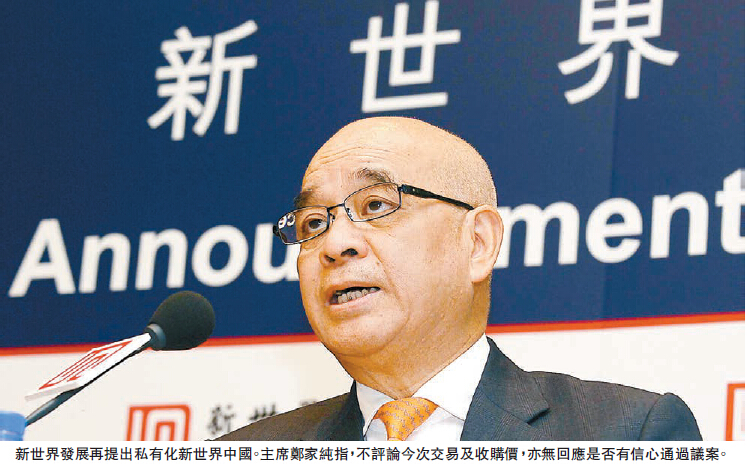 新世界發展是次作價較2014年提私有化作價高出近15%,同時是以現金要約方式提出,相信可提高交易成功機會。