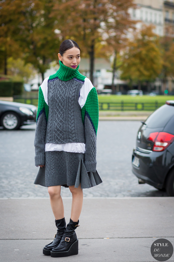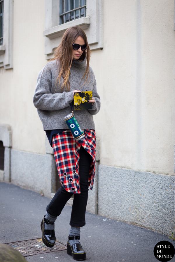 在复古风回潮的今年也让高领毛衣再次火了一把,小小的高领不只保暖而且很时髦,几乎是冬天必备的一件基础单品。不过对于下半身有些小肉肉的姑娘来说最好选择短款的高领毛衣哦,尤其是亚洲女生个头不高的话要慎选肥大款式,虽然穿出来特别有范儿但并不适用。或者将贴身的高领毛衣塞在半身裙里也能重塑身材比例,看起来腰肢也会更加纤细。