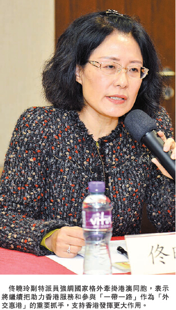 佟曉玲最後強調,國家格外牽掛港澳同胞。「國家始終心繫港澳同胞,自香港回歸以來,外交部駐香港特派員公署協助特區政府妥善處理了萬餘起涉港領事保護案件,有效維護了香港同胞海外合法權益。」