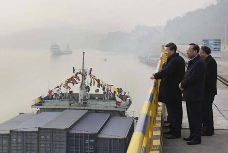 2016年1月4日下午,習近平來到重慶果園港考察。