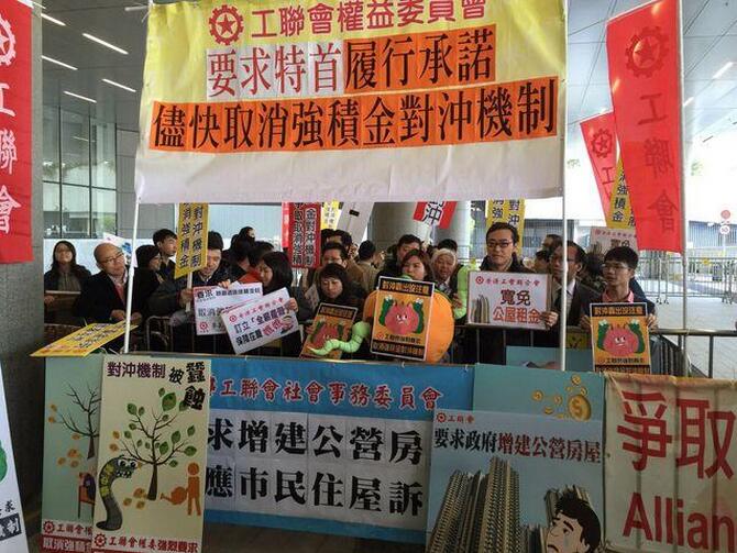 另外,工联会权益委员会亦到场请愿,要求《施政报告》回应劳工诉求,取消强积金对冲机制、统一法定公众假期至17天,以及增建公营房屋。