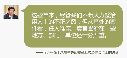 這些年來,盡管我們不斷大力整治用人上的不正之風,但從查處的案件看,任人唯親、賣官鬻爵在一些地方、部門、單位還十分嚴重。有的拉關系、找靠山,攀龍附鳳、跑官要官;有的明碼標價、批發官帽;有的舉大旗、拉山頭,選邊站隊、拉幫結派;有的在用人問題上極其專權,對下屬買官來者不拒,對組織部按正常程序研究的用人方案概不同意。
