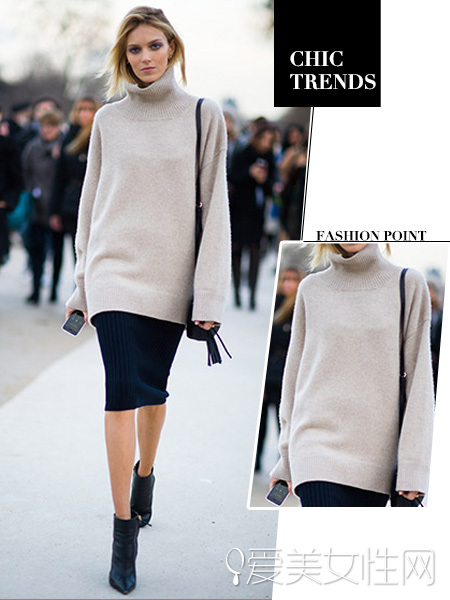 这件长款毛衣真的获得许多街拍达人的喜爱啊,修身设计长至膝盖,不管是搭配皮裤还是卷脚牛仔裤一样显眼有型,穿上无绑带的帆布鞋或是白球鞋增添随性感!
