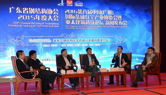 發布會現場還安排了論壇研討環節,包括王仕統、黨保衛、郭慶、孫緒東、尹衛澤、周子鵠、賀金龍、廖云鵬、郭志華在內的九位業界資深專家和優秀企業代表,從自身的立場和經驗出發,圍繞著 “單層屋面系統技術在鋼結構建筑的應用”、“裝配式鋼結構住宅設計的關鍵問題”、“國內外裝配式鋼結構住宅發展的現狀與趨勢”、“鋼結構住宅的鋼構架”、“鋼樓梯、三板等制造工廠化、工地高強螺栓裝配化”、“中國裝配式鋼結構住宅的配套體系”等議題,踴躍發言,建言獻策,現場氣氛熱烈,高潮迭起,讓場下聽眾獲益匪淺。