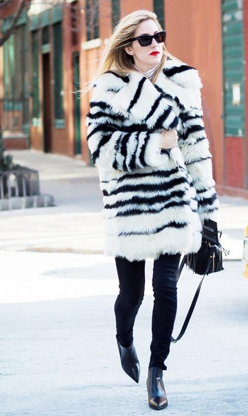 皮草+紧身牛仔裤+厚底鞋