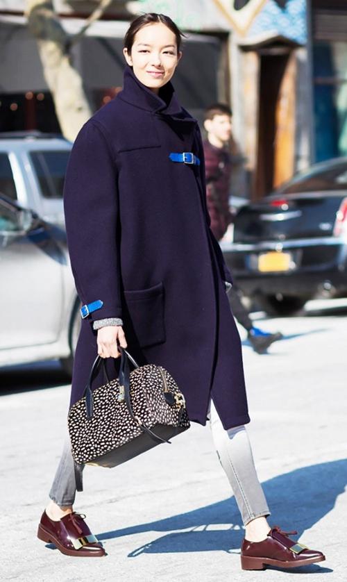 Tips:紧身牛仔裤+廓版大衣