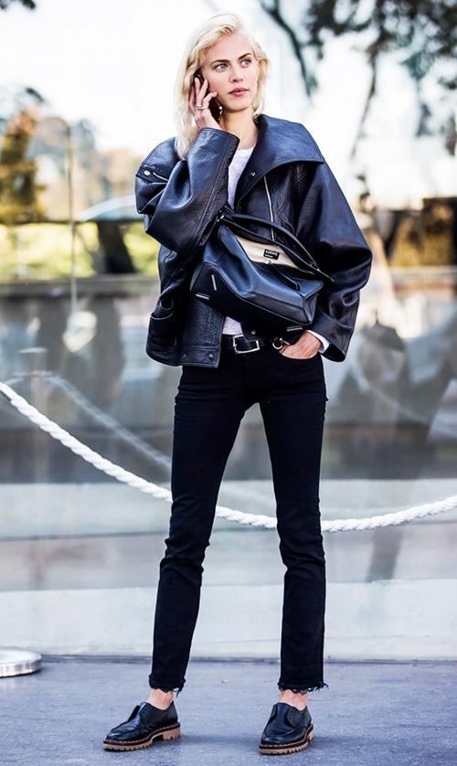 Tips:紧身牛仔裤+皮衣