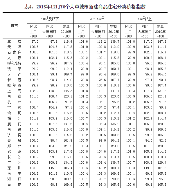 2015年12月份70個大中城市住宅銷售價格變動情況