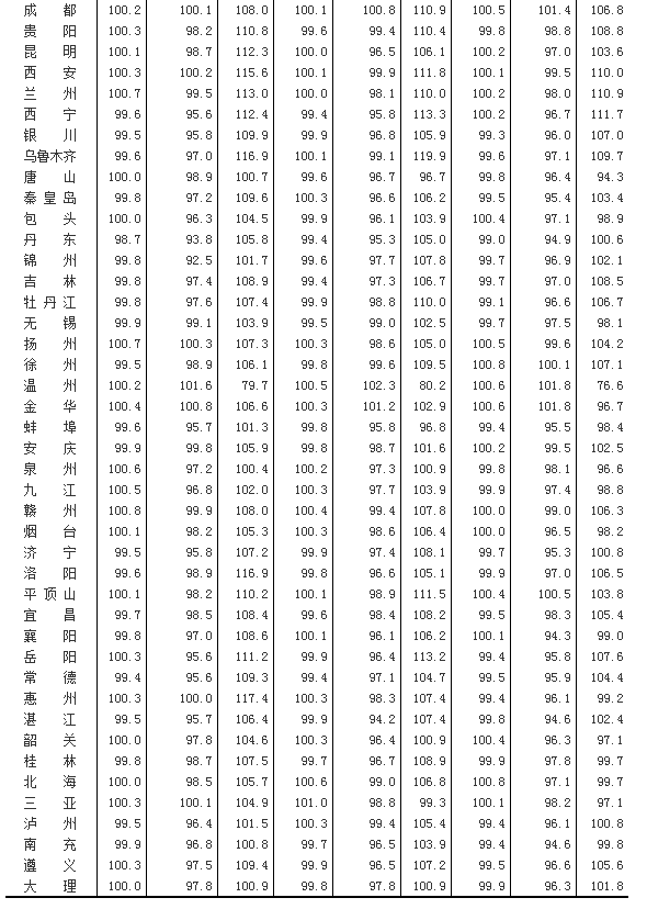 5、價格指數的計算方法詳見中國統計信息網《住宅銷售價格統計調查方案》。