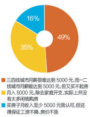 調查結果顯示,49%參與投票的網友覺得,實際上三四線城市月薪很難達到5000元,而一二線城市月薪能達到5000元,但又買不起房。網友認為,收入水平與工作地不匹配成為阻礙農民工購房的主要原因。此外,35%的網友認為月入5000元,除去家庭開支,實際上并沒有太多閑錢購房。16%的網友則認為要想讓農民工順利在城市安家,還得保證工資不降、房價不漲。