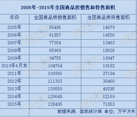 國家統計局數據顯示,2005年末至2009年末,全國商品房待售面積均未突破2億平方米,其中2007年末,商品房待售面積僅為1.34億平方米。2008年以來,中國商品房待售面積呈不斷增加態勢。而2015年末,全國商品房待售面積高達7.18億平方米,創下歷史新高,接近2007年一年全國商品房銷售面積。從2007年到2015年的9年時間,中國商品房待售面積增加了4倍多。