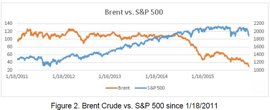 根據坎伯蘭顧問公司量化分析師Leo Chen,當去年12月份油價跌破40美元/桶水平時,油價和股市的相關性就開始變得非常緊密。自那時起,布倫特原油期貨價格和美國標普500指數的同期相關性達到“難以置信的高度”,至91.39%。