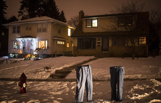 据悉,格如庭几年前就开始做这件事情,他将洗后结冰的牛仔裤放在院子里当作冰雕,形态各异,大小不一,有些看上去恰似没有上身的“隐形人”直直地站立着。在他将这些“隐形人”的照片上传到网上后,引来当地许多人纷纷效仿。