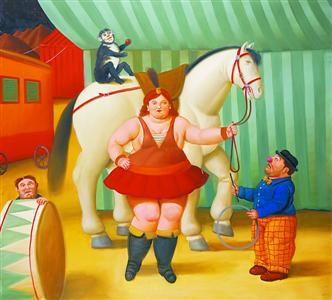 圆滚滚、胖乎乎,是费尔南多·博特罗作品的典型特征。“他的画令人仿佛梦回唐朝,那种丰满、充实、快乐,好像唐朝的文人画。”陈启伟说。尽管人物有些夸张变形,博特罗仍然坚持具象绘画的形式。他介绍,自己到欧洲旅行探索的时候,深深被意大利中世纪以及近代的艺术样式吸引,由此形成了自己独特的艺术样式。