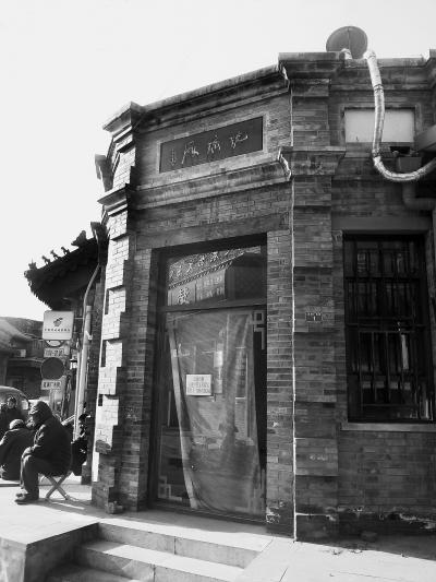 琉璃厂东街1号,一处经营场所大门紧闭待租,不少老街坊搬来小凳在门口晒太阳。