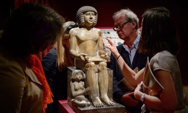成交!北安普顿收藏的一件埃及着色石灰石雕像Sekhemka,2014年出现在伦敦的佳士得。图:Leon Neal/AFP/Getty Images