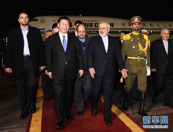1月22日,国家主席习近平乘专机抵达伊朗首都德黑兰,开始对伊朗进行国事访问。这是在梅赫拉巴德机场,习近平受到伊朗外交部长扎里夫等热情迎接。新华社记者 饶爱民 摄