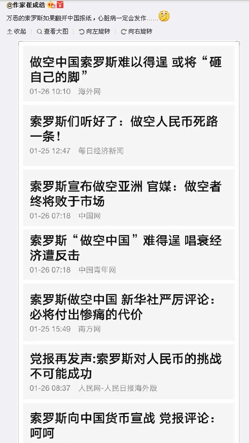 索罗斯的看空和中国媒体的反驳