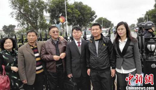 图为陈满与其大哥大嫂和辩护律师合影。 付美斌摄