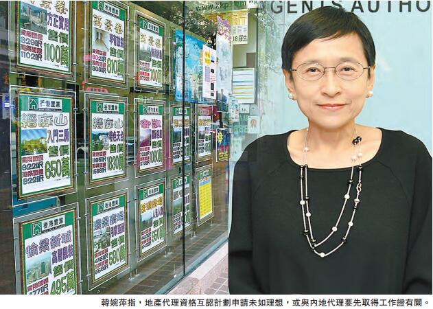不過,地產代理監管局行政總裁韓婉萍昨日指出,有關計劃申請反應遜於預期,她解釋,計劃推出當年共有225名本港代理經紀,經考試后取得內地地產代理資格,而同期內地經紀則有66人取得本港地產代理資格,但當中僅有33人進一步申領代理牌照。她認為,申請反應未如理想,或與內地代理需先取得工作證才可在港工作有關,因規定阻礙了內地經紀申請的意欲,故當局現正與內地相關部門檢視并商討延續計劃問題。