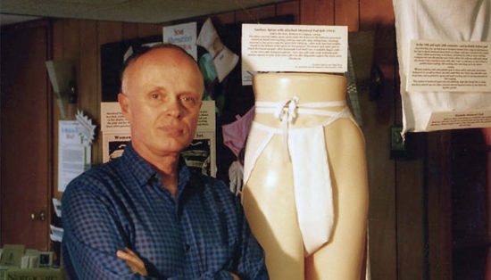 “这些是世界上第一款商用卫生棉条。”Harry向我们介绍说。1995年Harry开办了这家博物馆,初期的大多数展品都是他早年在欧洲时的收藏。那时他在德国为美国政府担任美术设计师,因此有机会接触许多印刷品以及平面广告的设计。在长期的积累中,他对高洁丝及其它经期用品广告的兴趣变得越来越浓厚。最初,他的收藏品大都是人工制造,并且质量也十分一般。但随着他名声鹊起,许多个人及产品制造商都会给他提供一些独特的展品。看起来,人们虽然不愿意明说,但仍然希望她们的经期珍宝能够得到妥善保存。