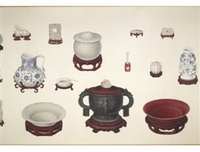 雍正 《古玩图》手卷 凡一提清朝宫廷所藏的历代宝物,都会不加思索地答“现大多藏于台北故宫博物院和北京故宫博物院”。如果对清史没有认真查阅过,得出这样的结论无可厚非,但如果对清史有所研究,特别是对康雍乾三代历史花过工夫,那未必会如此认为。事实上,清宫所藏历代主要精品当时已存放在圆明园内,这在清宫档案中有明确的记载。 圆明园始建于康熙四十八年,至雍正朝时工程大体完工,已修毕三十三景,乾隆时又添加七景,最后总共完成四十景,是皇帝主政和休憩的另一场所。康熙帝好大喜功,不愿追随前圣老路,于是他想打造一处胜过明故宫的皇家宅第,建筑风格上,他也另辟蹊径,集中西风格于一炉,内中的陈设更是汇皇室所储,尽选内府奇珍置于其内。为证明此说,我们从康雍乾三代行走于清宫的意大利传教士郎世宁的足迹中清晰可见。郎世宁于1714年接受耶苏会传道部的派遣,于康熙54年抵达澳门,且在另一位传教士马国贤的陪同下觐见康熙皇帝,从此展开了他传奇历程的一生。他除了完成宫廷绘画的主要工作外,也参与圆明园建筑楼群的规划,以及水法殿的室内陈设和水法装置的设计。从相关记载可以证实,只要皇帝指派,他一概加以执行。历史上著名的《古玩图卷》,就是得雍正的亲自授意在圆明园完成的。当时照相技术落后,采用工笔画来记录这些珍宝的面貌是最好的选择。根据清雍正八年《活计档》记载:“圆明园来帖内称,本月十三日太监刘希文、王守贵传旨:著画西洋画人来圆明园画古玩,不必著郎世宁来,钦此。”说明郎前次已来过,只是这一次不用来罢了。又述“于七月初一日,画得绢古玩册页两册,内务府总管海望呈览,奉旨:不必用绢画,用纸画手卷,钦此。”此记载清楚地说明清宫顶级珍宝已移藏圆明园中,故宫尚有留存也是些挑剩的或者皇帝并不入眼的东西。 从《古玩图卷》上的分析,加之乾隆帝闲暇时喜好欣赏把玩宫中所藏的珍品,不难想到,内府原藏历代遗珍中精尖稀的已移进圆明园内。乾隆二年(1737)有关“初九日……著将画古玩手卷预备呈览,钦此”的记载中,证实乾隆帝对《古玩图卷》的喜爱,并降旨:“著照手卷上贴长黄签古玩取来,钦此。”说明乾隆闲暇欣赏钟情的古玩先从《古玩图卷》中选择,想把玩的就贴上黄签,执事太监根据黄签标注到库房内找出木匣所装的古玩奉上(有关圆明园古玩统一制作黄花梨木匣的考证文章《圆明园黄花梨匣记考》一文中我将专门论述)事隔一天,又降旨“栢唐阿双柱,将古玩手卷持赴圆明园选古玩讫”,参照图卷按图索骥欣赏古玩成了当时乾隆爷的业余主要爱好。这也从另一侧面证实顶级宫廷遗珍已藏于圆明园。乾隆帝是个既遵循先帝祖规又不肯落后于先人,处处要创新的皇帝,他不但将雍正手里的圆明园三十三景增加到四十景,而且在室内陈设上更是顷内府所珍藏,并专为组装完成青铜器、瓷器的多宝格配置图录降下御旨。 那究竟圆明园中藏有多少清宫历代遗珍呢?我们从清宫档案记载看来,至乾隆二年为止,乾隆皇帝至少观看过八本《古玩图卷》,每卷宽62.5厘米,长20余米。看过而未记载或未看过的则更多,说明圆明园珍藏历代珍宝之巨!画古玩主要画出古物的质感才能展现它的真实性,宫廷选派擅长写实的西洋画师绘之,最为相得益彰。雍正帝下旨著西洋画师画古玩图卷的目的是想让后人知道清宫所藏的家底,但无意间将圆明园中藏有历代稀世珍宝的情报和信息也随之泄露了出去,那些西洋画师也并非有意泄露,是在与家人亲友的交谈和信函的往来中,有的是赞叹有的是惊讶,如此,则有意无意地将圆明园汇聚天下珍奇的消息传播了出去。现在可以说,八国联军入侵北京的主要目的就是冲着圆明园的稀世珍宝来的。为什么不冲故宫而矛头直指圆明园?足以说明这一点。 康雍乾三帝执意把圆明园打造成世界无与伦比的一号宫殿,必须超过明永乐帝建造的故宫,事实上,它在规模和建筑的精细程度上均超过故宫,单面积就比故宫大四万方,其中陈设的珍宝更是倾华夏顶级奇珍。据有关资料记载,圆明园所藏历代文玩至少在两百万件之巨,上至先秦的青铜礼器,下至唐宋元明清的历代书画精品,以及宋元明清诸朝官窑佳器,应有尽有。康雍乾嘉道五代皇帝一年大多时间都呆在圆明园,可见他们对圆明园的倾心和喜爱,也可说明顶级的宝贝置于圆明园,二三流的留在故宫的事实。现在有些人一谈及官窑必以故宫为标杆,实在有失偏颇,殊不知,真正顶级的宝贝已流失在海外,现相继散落在世界各大博物馆和大大小小的藏家手中。 近十余年间,欧洲金融风波加之第三四代子孙对中国古玩不感兴趣,于是又戏剧般地流散出来,一些有眼力的藏家确实从中收到一些顶级的御窑遗珍,而且这些宝物又往往保存得特别完好,少量的还带着清宫特制的原装黄花梨木匣。这些如新的官窑佳器被保护得如此完好,真为它们加额庆幸!那些最早珍藏它们的老一辈,深知其珍稀而百倍爱护,加之大多数外国人对物品较珍惜,故宝光四溢,应了“官窑如新”的老话了。而这些如新的佳器往往难入某些人的法眼,不敢点头认可。这也难怪,因他们以前无缘见到类似的佳器,他们认为,私人藏家手里怎么可能藏有比故宫更精的藏品呢?失误在把故宫藏品作为最高标杆。鉴定千万不能预设教条,更不能想当然,不能用脑子看东西,必须用眼睛断