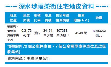 地政总署公布,万科置业(香港)以13.06亿元,夺得深水埗福荣街、营盘街与福华街交界的商住地,以地皮最高可建楼面面积约30.7万平方尺计算,平均楼面尺价约4249元,属市场估值的下限。