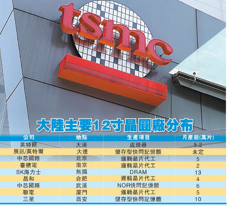 投审会昨日表示,这座晶圆厂规划月产能约2万片的12寸晶圆,预计2018年下半年开始生产16奈米制程,但将较台湾厂16奈米量产时间晚3年;台积电10奈米制程预计今年底量产,南京厂量产时,台积电10奈米已在台湾量产1年多。