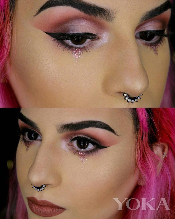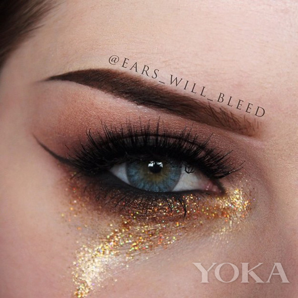 在Instagram上已经有很多彩妆达人做了这个眼妆的正确示范了。有一种是以微光与眼影结合,下眼睑的部分亮亮的,这种比较适合日常妆。