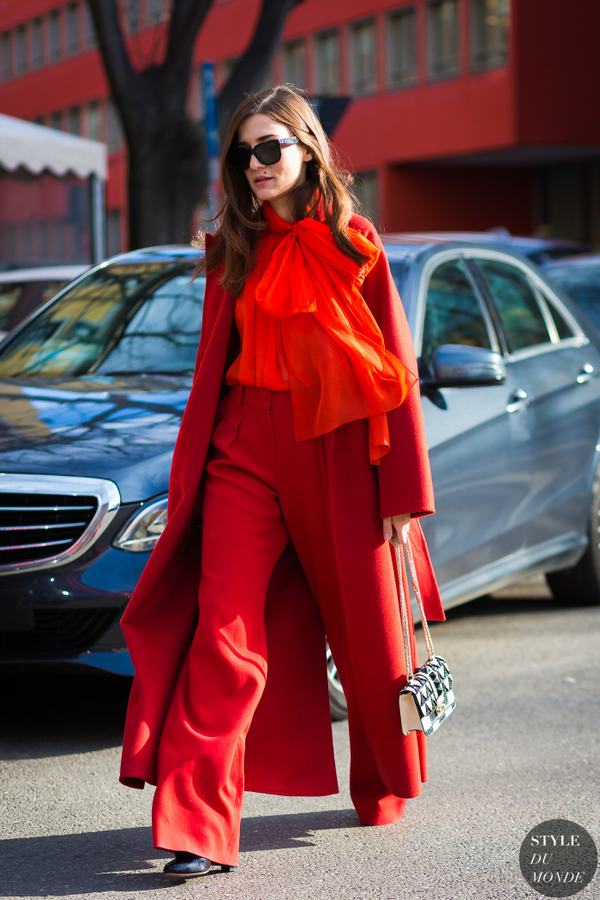 就连时装周场外的潮人们也纷纷选择了同色穿搭法,无论什么颜色都能很好驾驭。