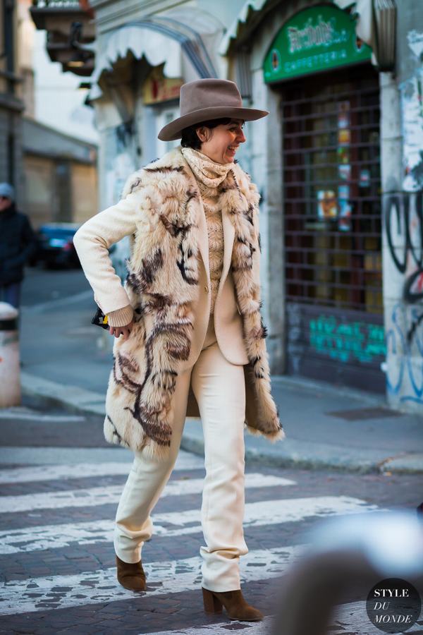 极具膨胀感的皮草外套最显瘦的穿法就是如此,搭配紧身裤或者短裙+长靴,露出诱人的美腿视觉效果会更好哦。