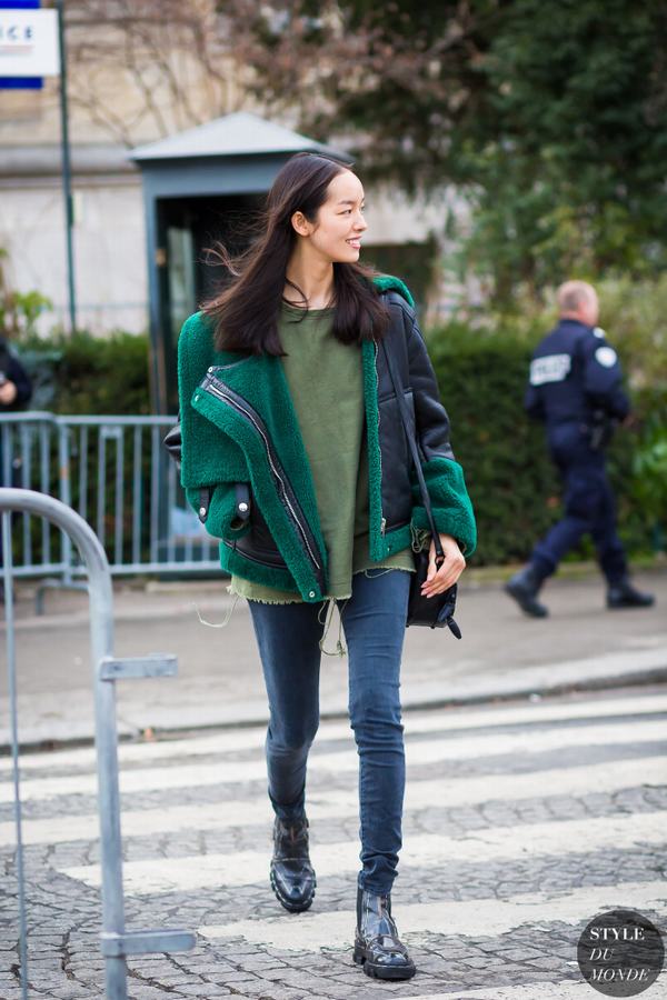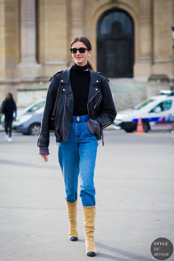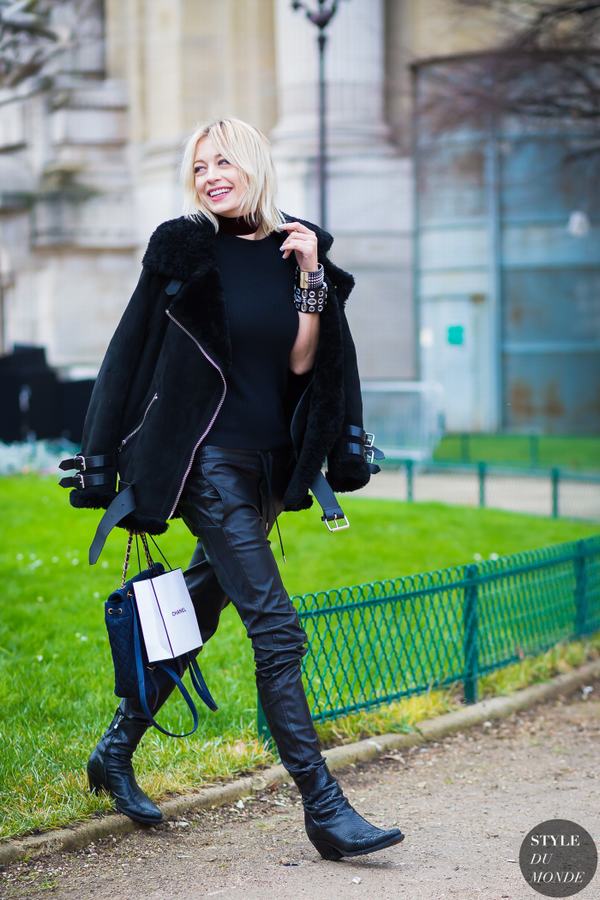 廓形机车外套+紧身皮裤,冬日显瘦又耍帅的最佳拍档。