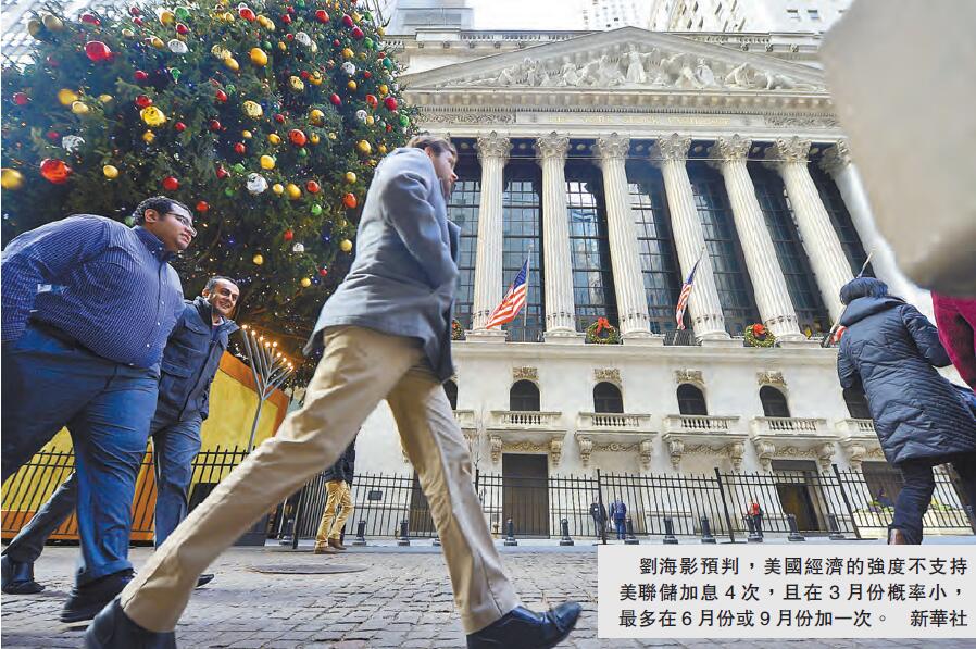 刘海影:在目前这种经济情况下,美联储是没有能力加息4次的,美国经济的强度本身不支持美国再加4次息。我认为美国今年最多有能力再加一次息,现在美国市场上的期货价所显示出的市场预期也是加一次息。