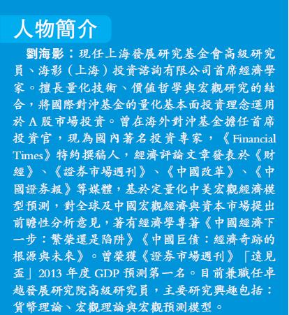 刘海影:2016年总的来说,发达国家的黑天鹅几率比较少,经济是处於一个平庸的状态,虽然没有那麽强劲的增长,但债务风险和金融风险都处在降低的过程中,发达国家所呈现出的惊奇是比较少的,更多的不确定性的确集中在发展中国家,而其中毫无疑问中国是核心。
