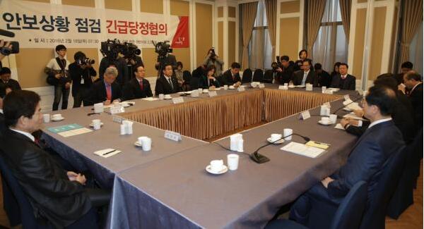 当地时间2016年2月18日,韩国首尔,韩国政府执政党官员召开紧急会议,讨论国家安全事宜。当日,韩国国家情报院称,金正恩现已对朝鲜人民军侦察总局发出指示,要求积极扩充对韩国实施恐怖袭击的力量。 东方IC 图