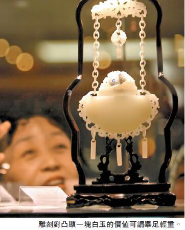 白玉與翡翠同為玉石,都有收藏價值,但兩者的鑒賞方法可謂是南轅北轍。翡翠屬於硬玉,講究的是色美,玉質透亮無雜質;白玉屬於軟玉,講究的是細膩滋潤。不過,市場上有不良商家誤導消費者,以鑒別翡翠的方法挑選白玉,讓消費者栽跟頭。香港商報記者李映萱