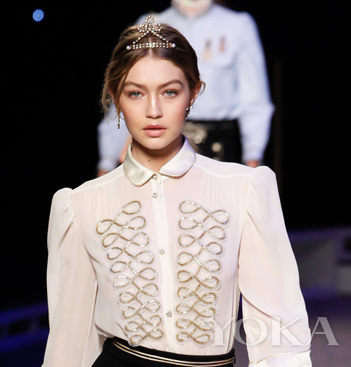 皇冠发箍最经常出现在Dolce&Gabbana等华丽精致的秀上,这次休闲品牌Tommy Hilfiger也让模特们戴上了皇冠,搭配精细图案白衬衫,瞬间贵气了许多。