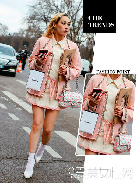 想要甜美少女风的女生,就一定要备一条粉粉的连衣裙咯!亮粉色很抢眼,也是活泼青春的代言,而淡粉色则显得更有气质。这身粉色+白色的连衣裙很具日本女生的可爱风,衬衫领显得层次丰富,外搭一件小香风的外套更和连衣裙形成一体造型。