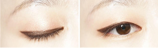 细长的单眼皮是非常典型的韩国脸标志,容易显眼睛小+眼神呆板,因此单眼皮的眼妆一定要规避掉这两点。 仔细看金高银眼妆,每一个镜头都有小小的彩妆技巧,比较常用的是——用自然的眼影代替眼线or用内眼线代替外眼线。 单眼皮不适合浓妆,如果和双眼皮那样用大力度描绘眼妆的话,会给人“用力过猛”的感觉,眼妆反而会显得脏脏的。简单、自然却又有神,如果能完全参透这8个字的话,任何人的单眼皮就能和金高银那么好看。(不参透也没关系,文末有超级详细的化妆步骤) 这些单眼皮女星也很美在“全民想开双眼皮”的风潮之下,总有那么几个坚持着单眼皮而且也有高人气的女星。 前韩国女子组合Wonder Girl成员安昭熙,被称为“馒头妹妹”的她单眼皮相当饱满。也可能因为“坚持不整容”的自信,安昭熙在韩国有相当高的人气(无论男女)。 方敏雅眼睛狭长,笑起来双眼自成一轮弯月,如此天然无公害的“笑眼”,即便是单眼皮,你能说不美吗? 刘雯国内单眼皮美人必定要说的就是刘雯,不笑的时候她能完美演绎什么叫“中性美”,微笑时候变身甜妞,一轮弯弯的笑眼瞬间就击中你。 重头戏终于来了,之前有说过单眼皮不适合太浓重的妆,因此适合单眼皮的眼妆都是走取巧路线。教大家一种眼影代替眼线法不会让单眼皮的你埋没在“双眼皮大军”之下的。 1、用浅棕色眼影打底,用棕色眼线画出上扬的眼线 2、眼睛向下看,在眼尾后方画方框,放大双眼 3、顺着方框的延长线往前填补整条眼线 4、然后用棕色系的眼线笔在之前画的黑色眼线外进行自然晕染 5、在下眼睑的后三分之一处,用棕色眼影勾勒,也是起到放大双眼的作用 在撰写这篇文章的时候,看到有很多人说“金高银和周冬雨长得很像,都是单眼皮”。Nonono,周冬雨不是单眼皮,是内双。明明是双眼皮却老是被认为是单眼皮——内双姑娘我是不是说出了你们的心声?但这种事,怪不得别人眼神不好,全是你化妆技术有问题!我们拿周冬雨来举例,如果你想要保全你的双眼皮,就不要画紧贴睫毛根的眼影、不要画超级黑的眼线、不要戴超级卷翘又浓密的假睫毛(左图),这些元素会“吃掉”你的内双。内双的你画眼妆,应该多使用更能显色的浅色系眼影、眼影不要画太粗太浓、睫毛稍稍修饰即可(右)。